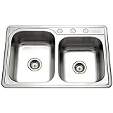 - 33-by-22-Inch 60/40 double bowl top mount stainless steel sink